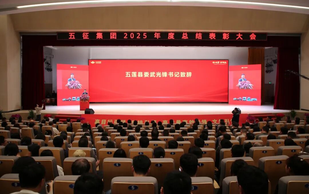 2月11日,以“同心筑梦 实干致远”为主题的五征集团2025年度总结表彰大会在日照科技职业学院学生活动中心盛大召开。大会表彰先进、展望未来,凝聚起全体五征人奋进“十五五”、迈向新征程的磅礴力量。五莲县委书记武光锋,县委副书记、县长孙丽,县人大常委会主任高子孟,县政协主席刘兆玉,市北经济开发区党工委书记、管委会主任李伟华,县委常委、县委办公室主任李晓东,县工信局党组书记崔维波出席大会。五征集团党委书记、董事长姜卫东,五征集团总经理姜文娟,集团部门级及以上负责人,管理人员、技术人员代表,受表彰的优秀团队、优秀员工代表,员工家属代表共1000余人参加大会。
